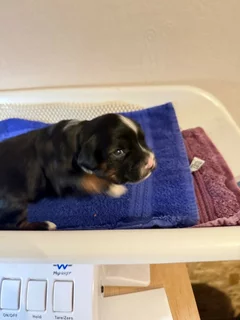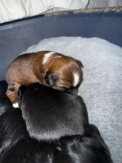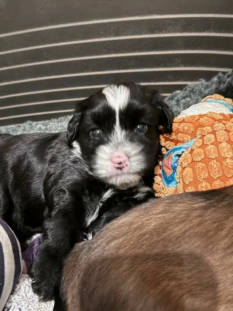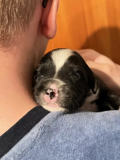 Hündin 3 "Yuki" (schwarz mit weißen Abzeichen)