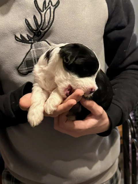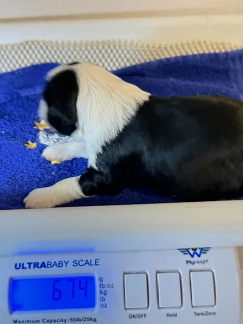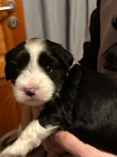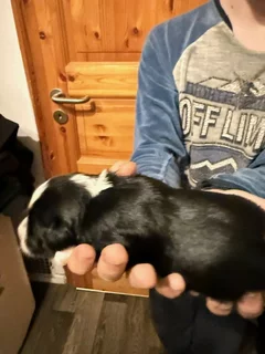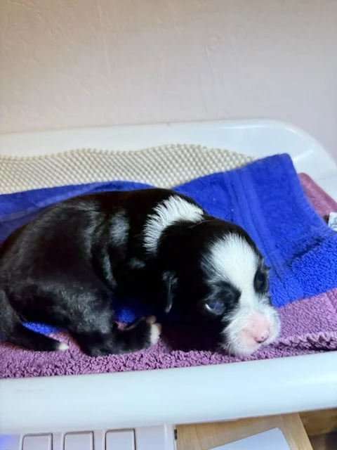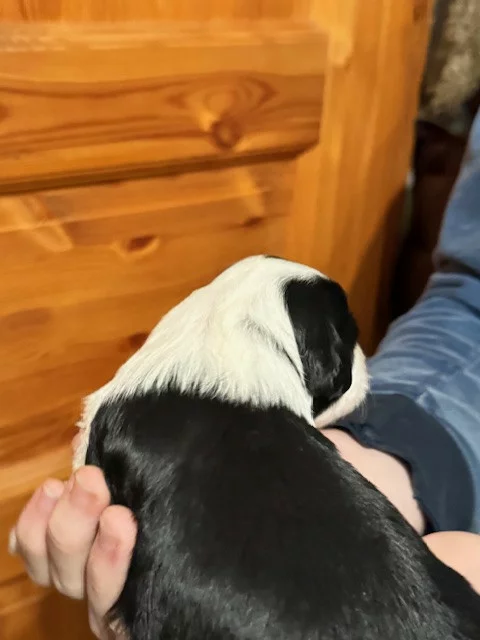 Hündin 2 (schwarz-weiß mit kleinen tan Abzeichen ( tricolor )