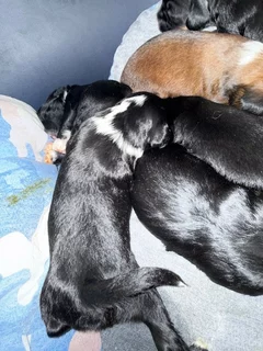 Es sind 3 Rüden in black&tan mit weißen Abzeichen, black& tan mit wenig tan und viel black sowie in schwarz mit weißen Abzeichen.